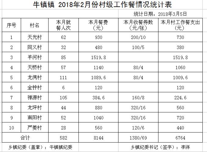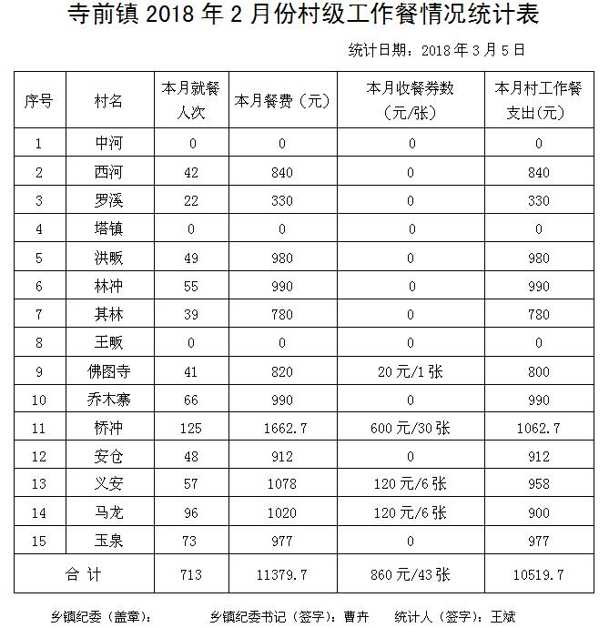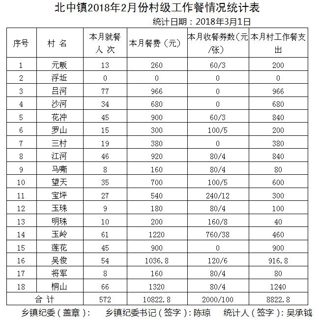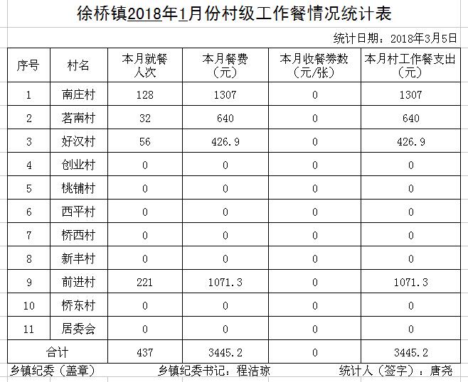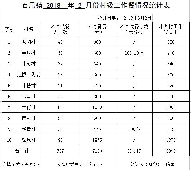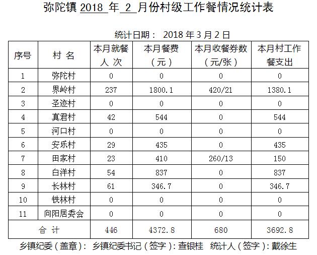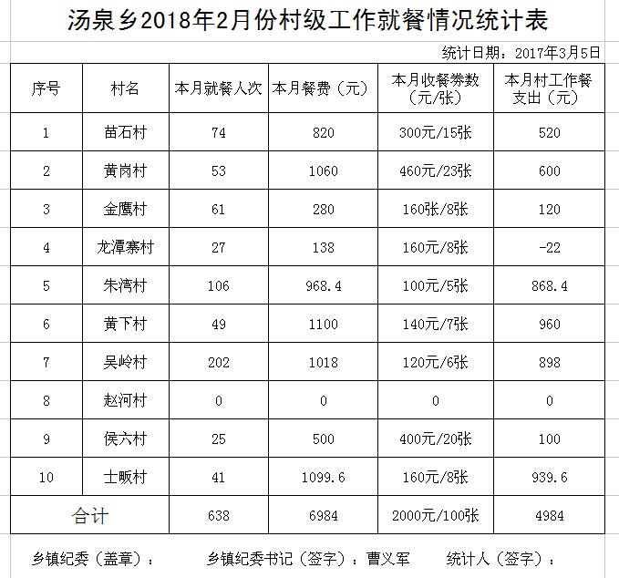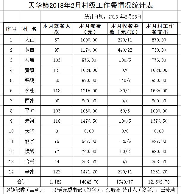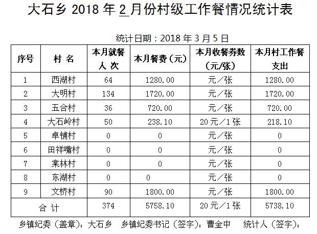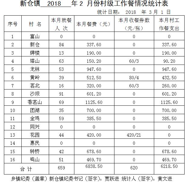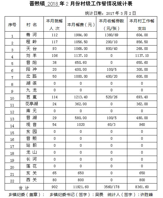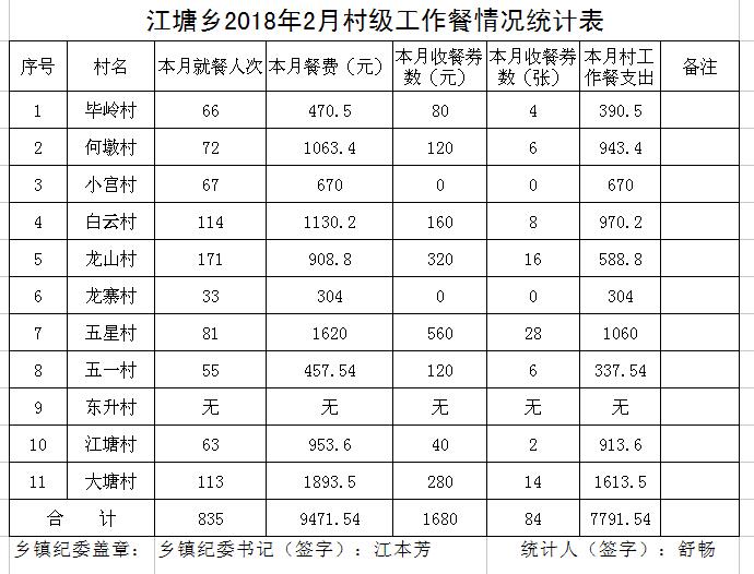 太湖县2018年2月份村级工作餐情况公示